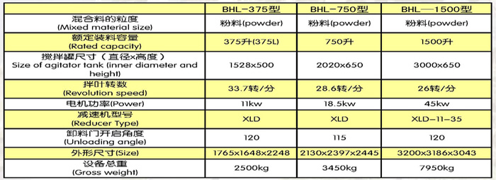 BHL玻璃混料机结构简单,操作方便、安全。传动系统采用新结构不需专用润滑设备,刚性好,运转稳定可靠,噪音低,延长使用寿命与国内同类产品相比节能16%,更换易损件及维修方便,经国内同行评定,该产品达到国际先进水平,填补了国内空白。是玻璃行业必备设备,主要用于玻璃原料混合,将多种成分的原料搅拌均匀,以供玻璃制品生产的需要 常用规格有:BHL-375型,BHL-750型,BHL-1500型,也可按客户要求加工定做。